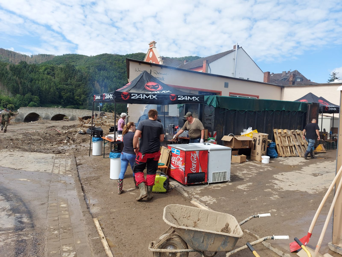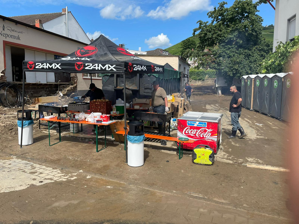 Es entstand der Gedanke, eine Grillstation zur Versorgung der Hilfskräfte und der betroffenen Bevölkerung einzurichten. Es wurden hunderte Steaks und Brötchen gekauft, ein Lastzug und die Autos bepackt und es ging los Richtung Ahrtal.